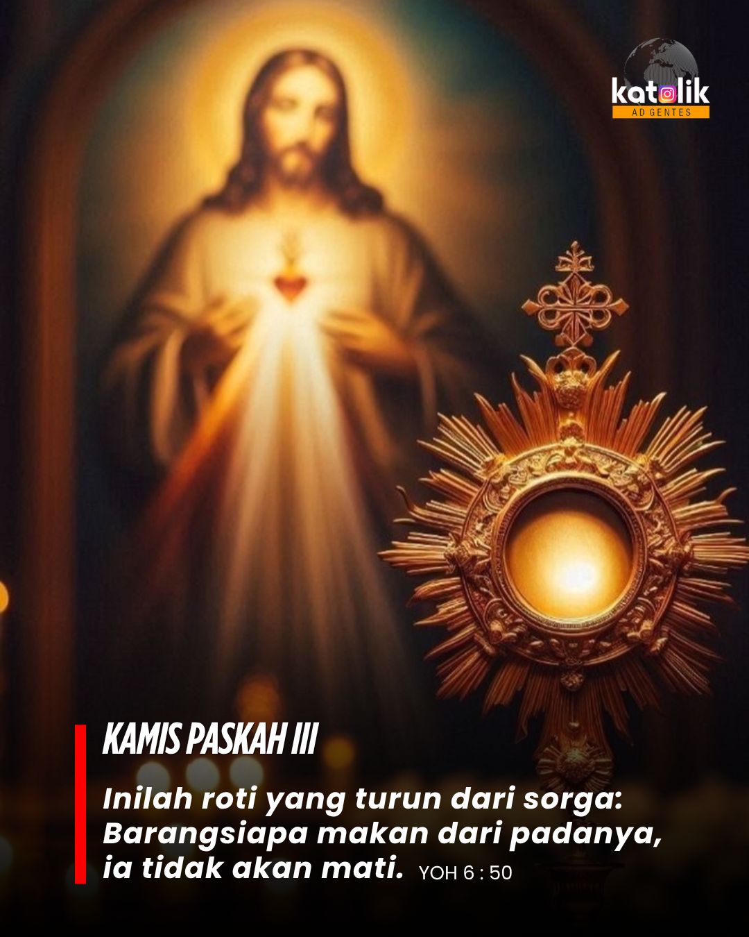 Lalu Yesus kembali menegaskan: “Akulah roti hidup.” Sekali lagi, ini bukan soal makanan biasa. Ini soal hidup yang sejati. Ia berkata: “Roti yang Kuberikan itu ialah daging-Ku, yang akan Kuberikan untuk hidup dunia.” Di sini Yesus mulai mengarah ke Ekaristi. Ia tidak hanya memberi ajaran, tetapi memberikan diri-Nya sendiri.