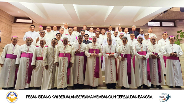 - Dalam rangka Yubileum 100 Konferensi Waligereja Indonesia (KWI) tepat pada 15 Mei 2024, para Bapa Uskup menyelenggarakan Sidang I pada tanggal 13-15 Mei 2024 dan Sidang II pada tanggal 7-13 November 2024 di Jakarta dengan tema Berjalan Bersama Membangun Gereja dan Bangsa. Kami bersyukur bahwa Allah memberkati, mendampingi, dan membimbing perjalanan KWI selama satu abad. Perjalanan yang panjang itu menjadikan Konferensi sebagai persekutuan para waligereja yang memiliki karakter yang kuat, yaitu persaudaraan (kolegialitas), kebersamaan (sinodalitas), kesetiakawanan (solidaritas) dan belarasa dalam mewartakan kabar gembira dan menghadirkan Kerajaan Allah.